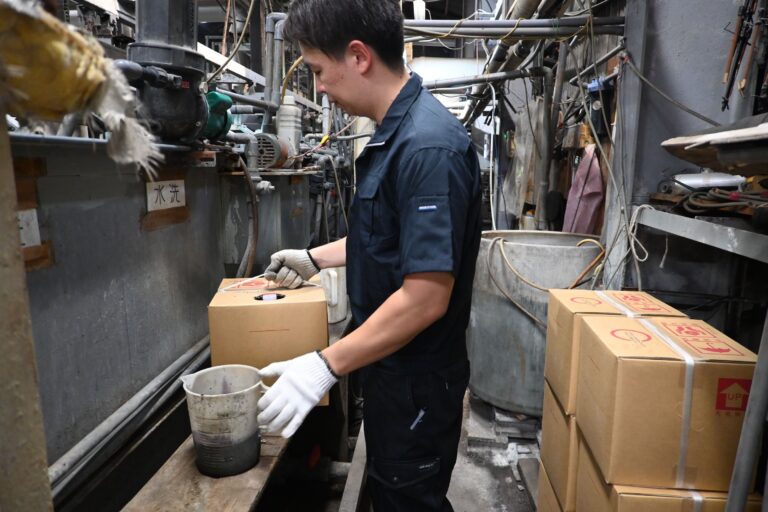 薬品メーカーによる定期分析と液剤補給を通じて、液の成分や温度を安定させています。 また、マイナス電解脱脂・プラス電解洗浄・超音波洗浄を工程に取り入れ、処理前後の複数回洗浄を実施。シルク印刷など後工程への影響もふまえた仕上がり管理を行っています。